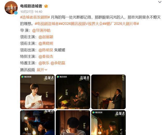 在鹅厂2026大剧片单公布以后,造城者剧方也在社交平台上发布了一组群像海报。 这也是《造城者》这部作品自从杀青以来首次发布全阵容角色剧照,其中最抢眼的当属穿着白色衬衫顶着一头利落短发的赵丽颖。